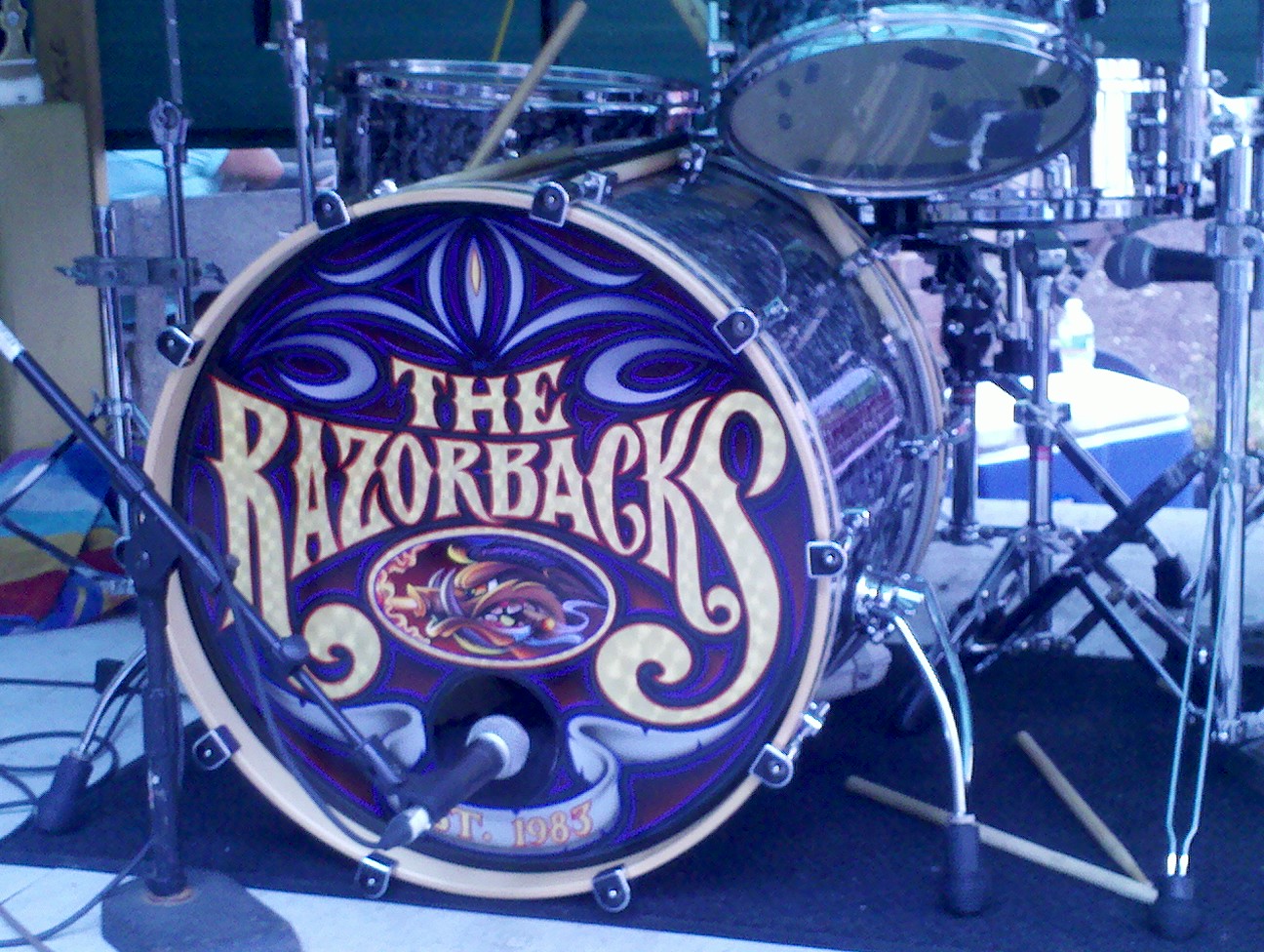 One Arm Bandit, Alan Johnson,and a bunch of fellow European pinheads were all roaming the lots. This cat Eddie's work caught my eye. And my boy Mark from the Razorbacks got his kick drum lookin' good!